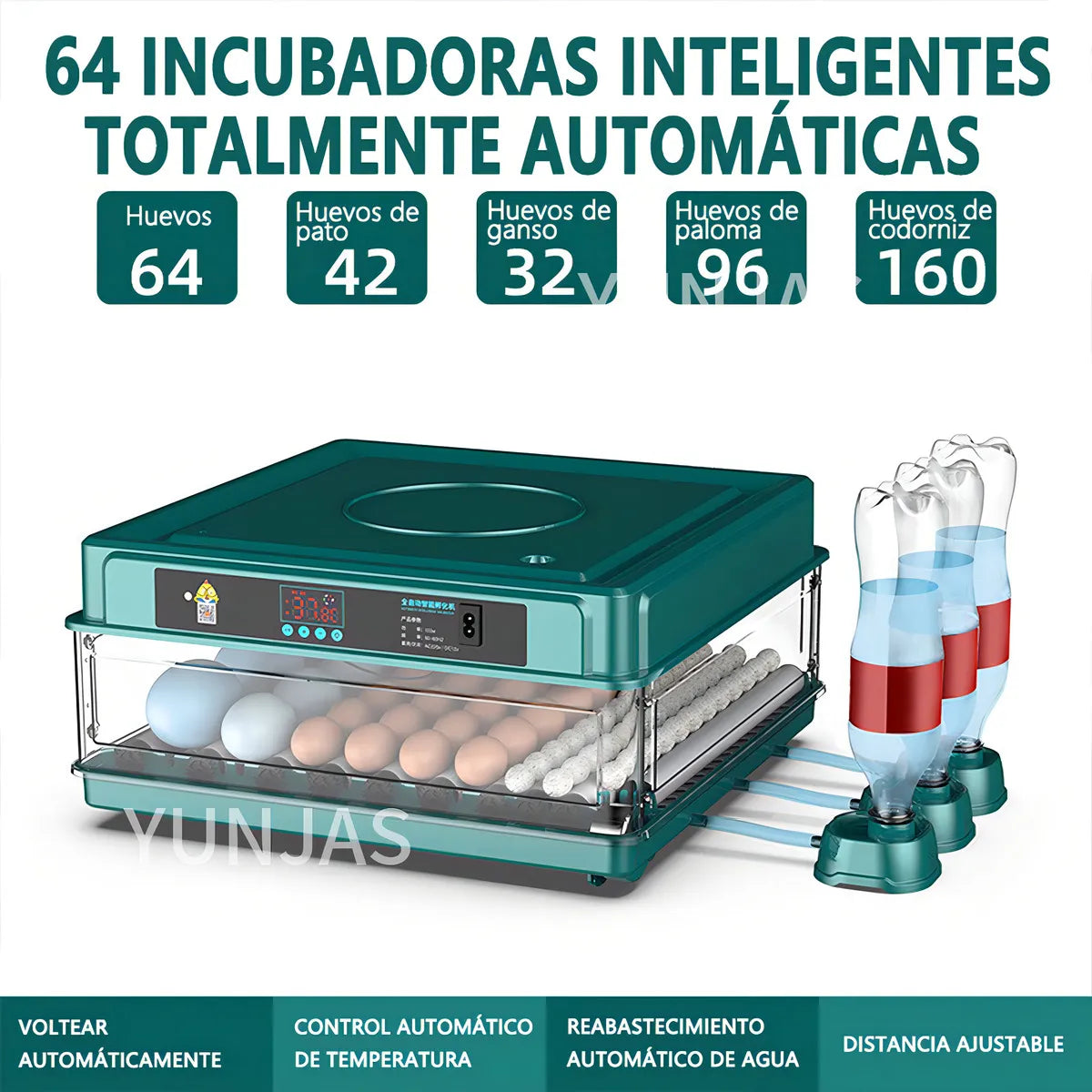 🐣 Capacidad ideal: hasta 64 huevos, apta para granjas pequeñas o proyectos de crianza.