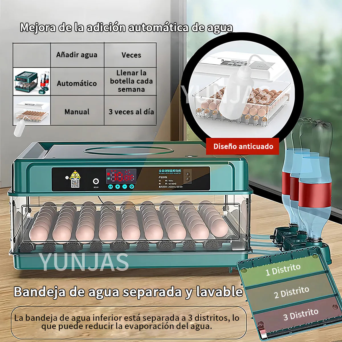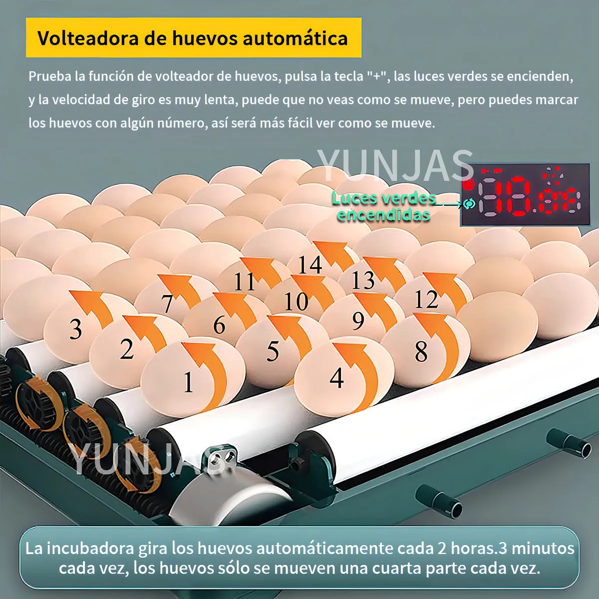 🔄 Rotación automática: evita que los embriones se adhieran a la cáscara, aumentando la tasa de éxito.
