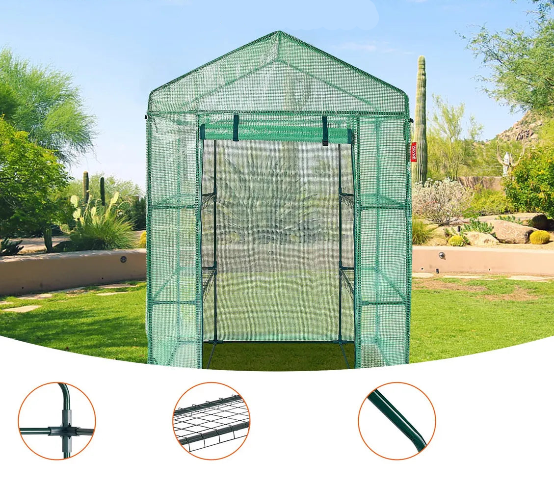 Un invernadero portátil diseñado para jardinería doméstica. Permite cultivar flores, hortalizas o plantas delicadas creando un microclima favorable, extendiendo la temporada de cultivo y protegiendo de climas adversos.