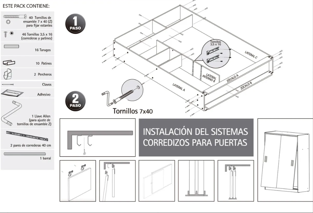 1. Armá el placard siguiendo el manual: separar las piezas, tornillos y paneles antes de empezar.