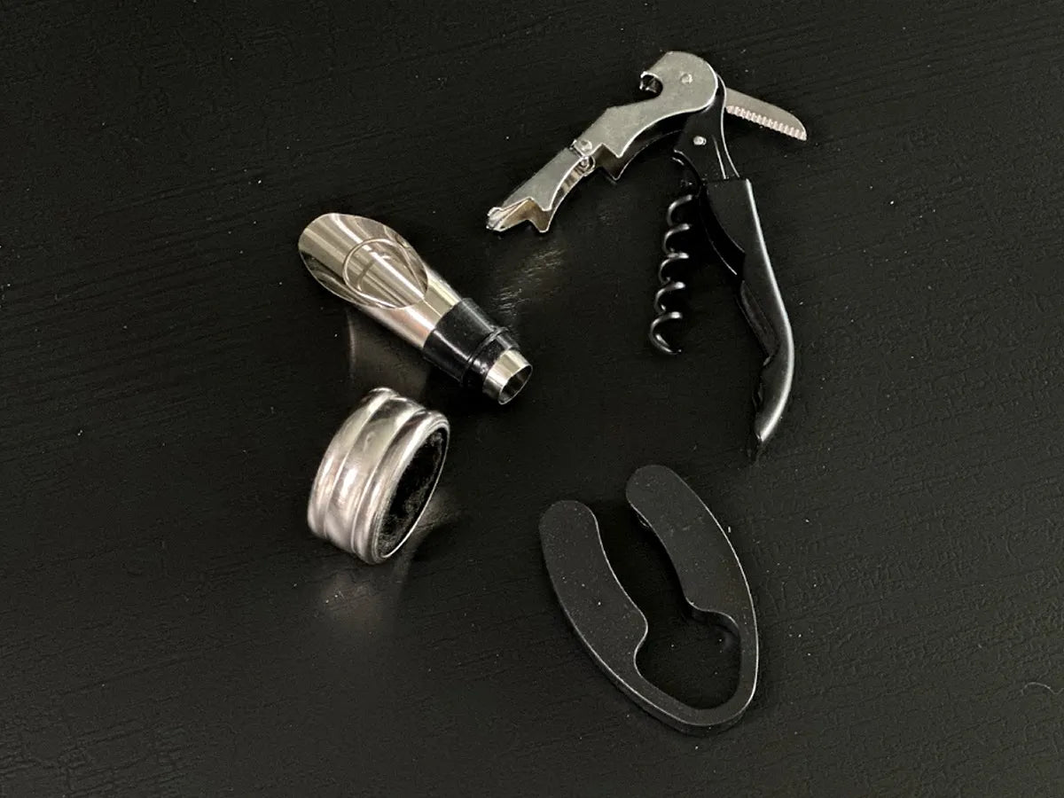 • Accesorios para vino: pueden incluir sacacorchos, tapón, vertedor, etc. (según set).
