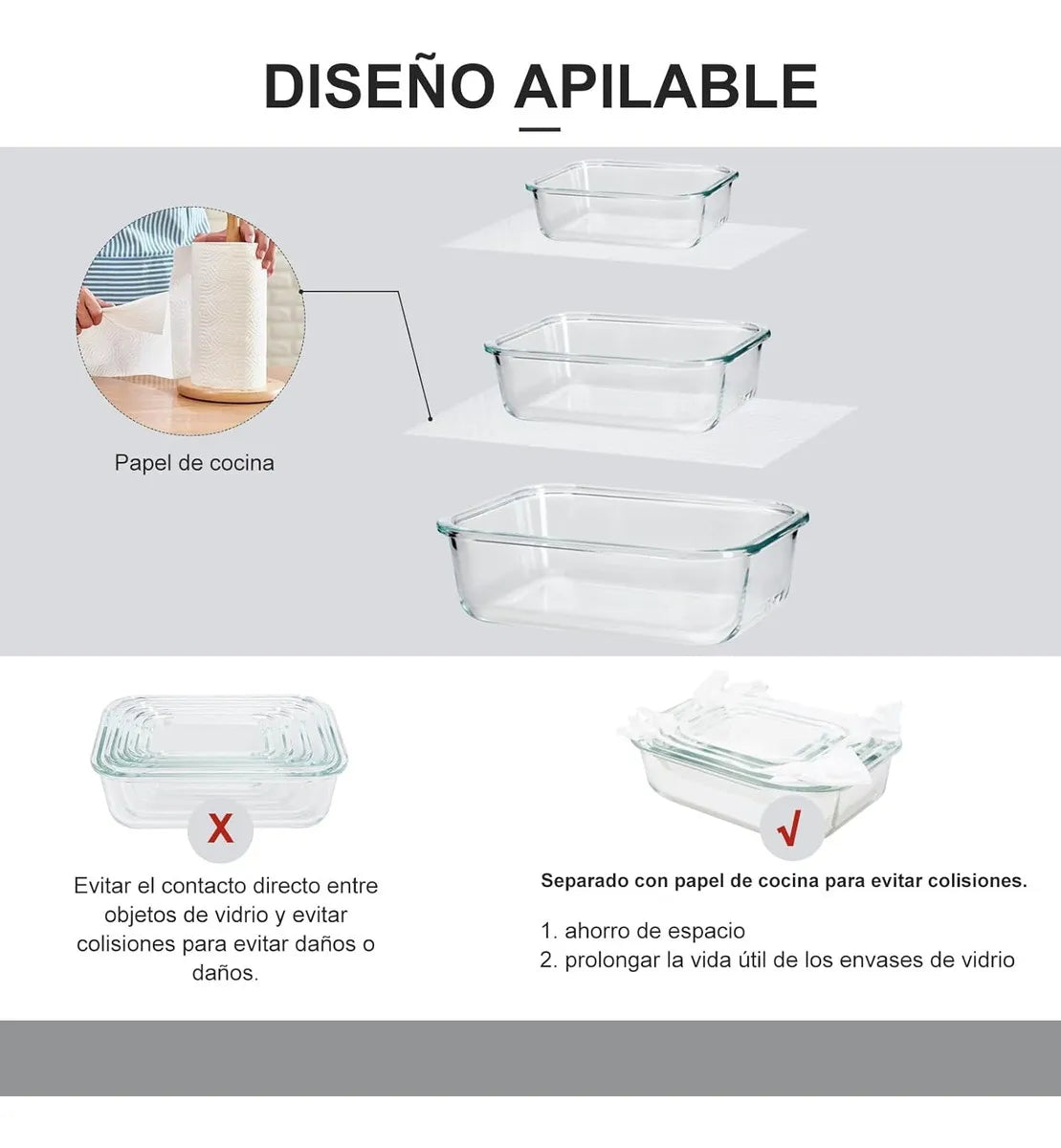 Ideal para conservar alimentos, preparar porciones, guardar sobras y mantener orden en cocina/pantry.