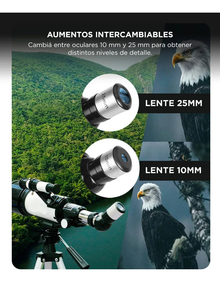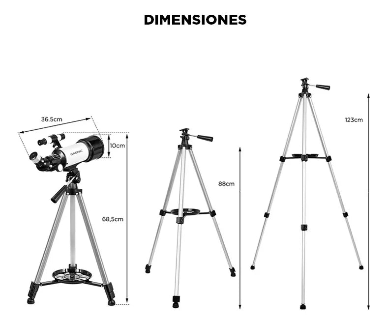 Incluye trípode regulable que brinda estabilidad y comodidad durante la observación, tanto para adultos como para niños. Fácil de usar y transportar, perfecto para uso educativo y recreativo.