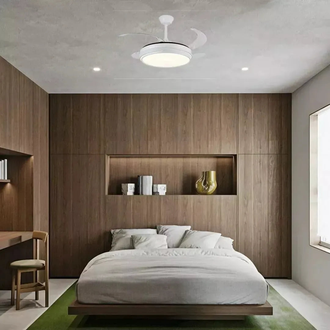 Ventilador de techo con aspas retráctiles y luz LED integrada – frescura y confort con estilo